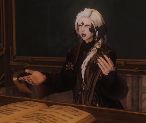 Years of trial and rebirth led her to retrain herself within the Thamaturge Guild of Ul'dah. Here she became a teacher, leading the next generation of mages until her body gave way to a horrid sickness that begun to eat and corrupt her once vast amounts of aether and left her blind.